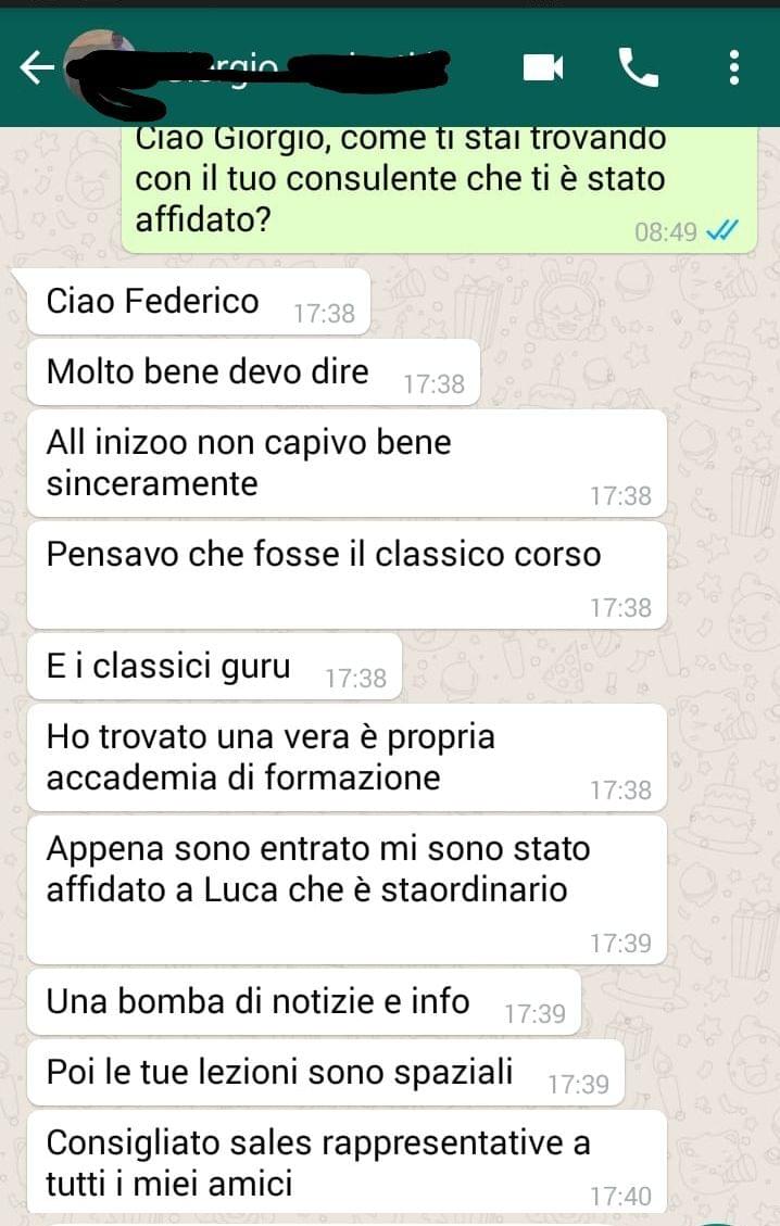 Verrai automaticamente assegnato ad un membro del nostro Team di consulenti. Questa persona sarà disponibile per fugare ogni dubbio sui nostri percorsi formativi. Inoltre, abbiamo un ufficio e un customer service molto veloce (raggiungibile tramite email e numero verde gratuito) laddove tu avessi problemi di natura tecnica.