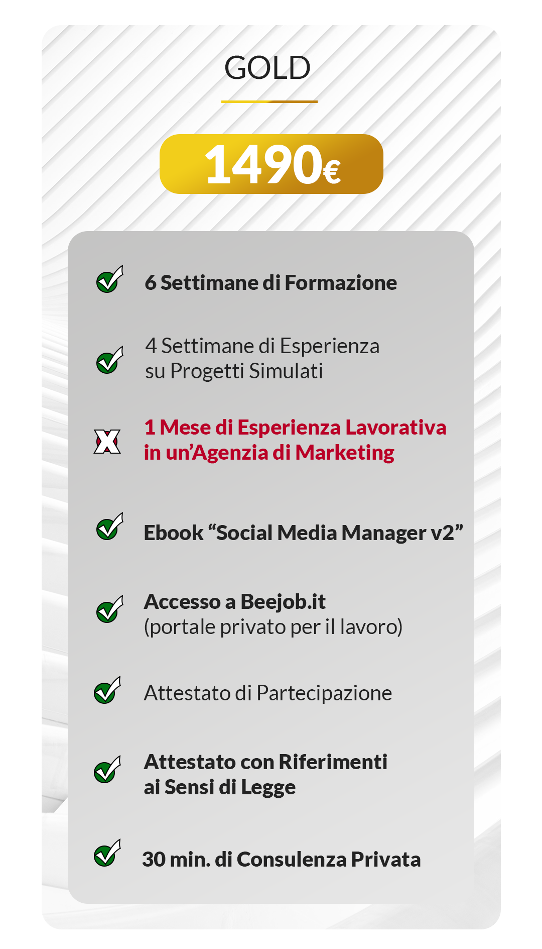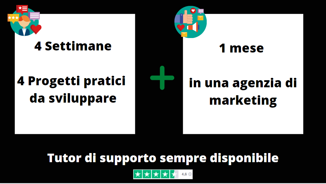 L'unico modo per riuscire a lavorare e guadagnare davvero in questo settore e frequentando il percorso completo Professionista del Futuro, perchè sarai formato su tutto e avrai la garanzia di poter fare espeirenza reale all'interno di un'agenzia di marketing in modo da consolidare le tue competenze.